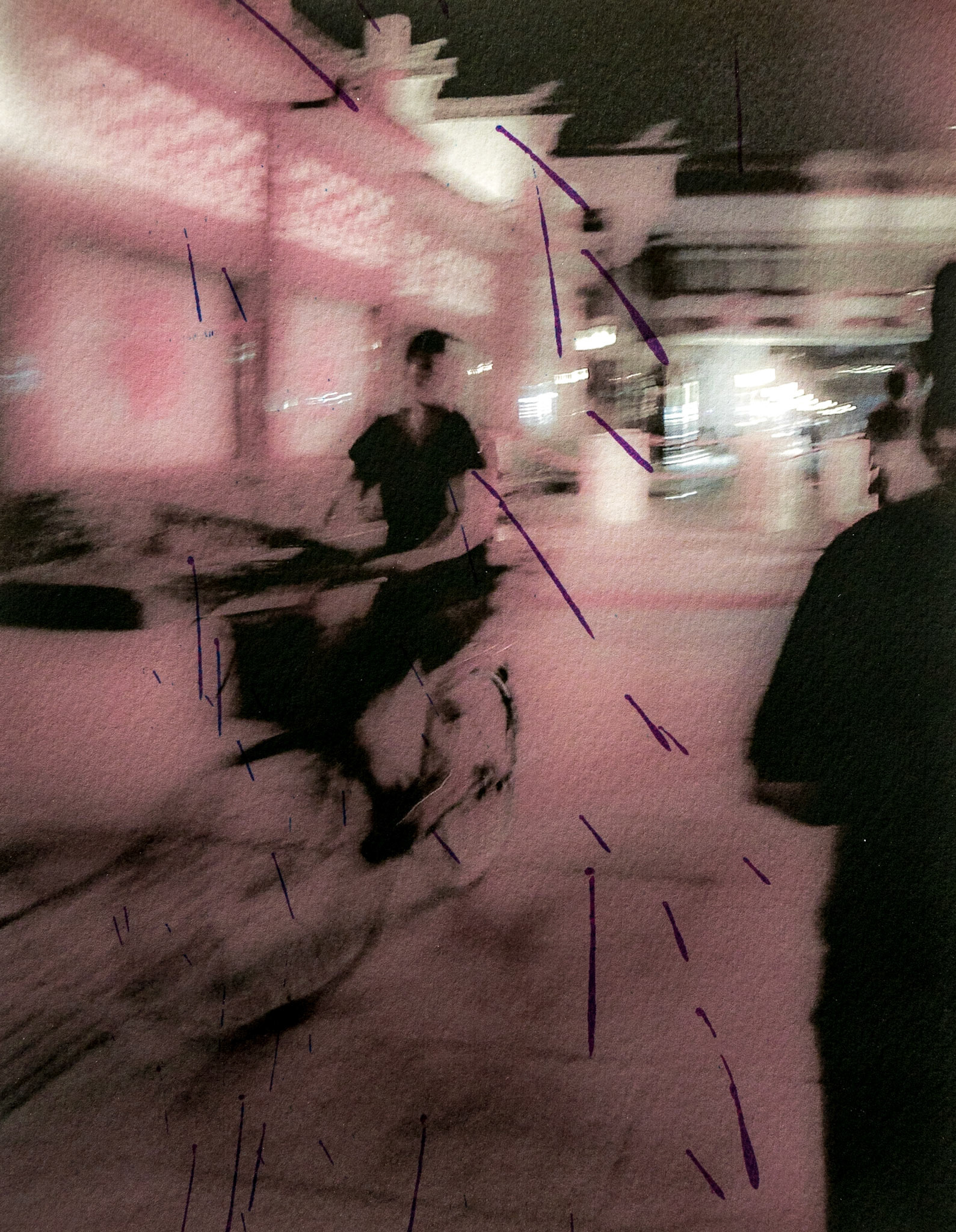 My inspiration for these montages is the work done by Robert Rauschenberg, Alexander Rodchenko, David Park and John Deibenkorn of the Bay Area Figurative Artists. Patterns created by mud splattered pickup truck’s on shiny enameled metal; atmospheric efforts created by intentionally blurring some or all people including some very out of focus shots; cropping and composing the portraits in different environs and sometimes made up scenes or mashups of architecture and place. These pieces are applied merged and orchestrated to achieve montage like prints with a new and fresh narrative.